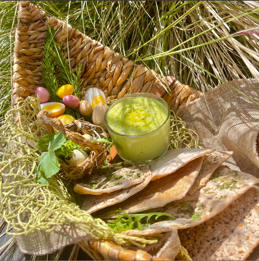 Ultimate Spring Basket (crackers, hummus, eggs)