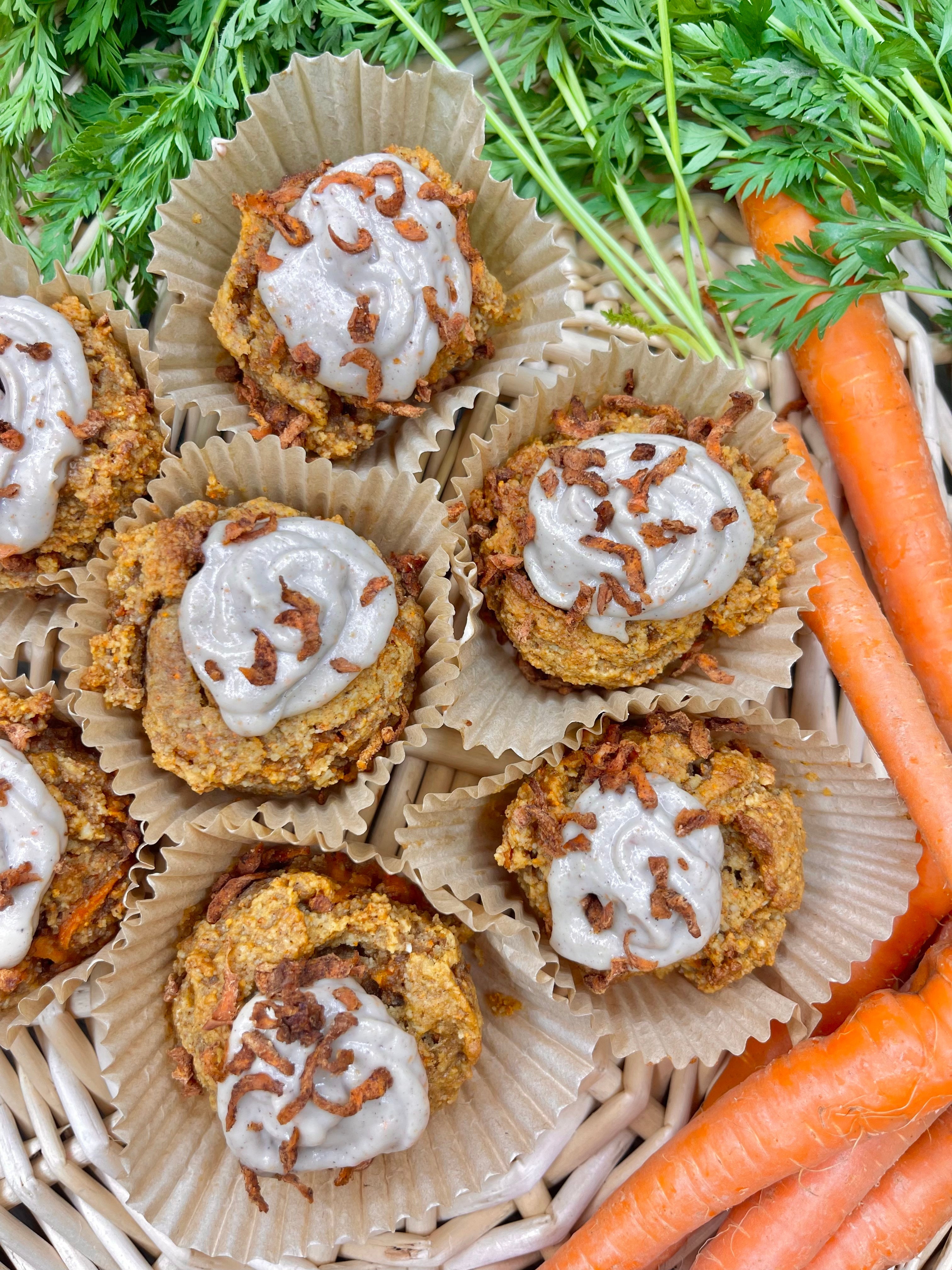 Carrot Almond Muffins with Cashew Cream (GF, Dairy-Free)