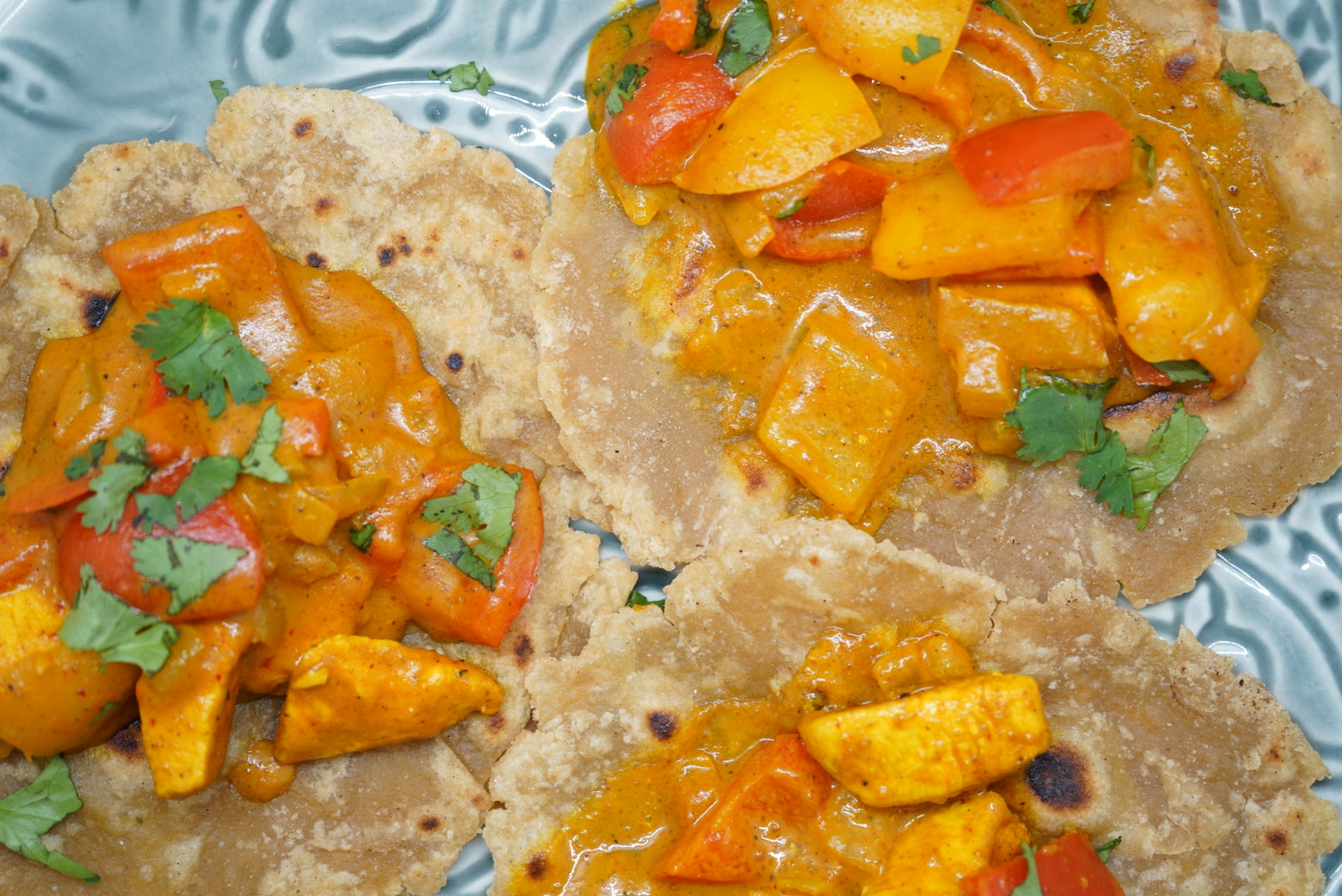 Gluten-Free Coconut Curry Chicken Tacos with Roti
